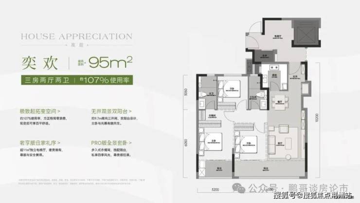 天创云和奕高层「奕欢」约95㎡户型三房两厅两卫/约107%使用率)