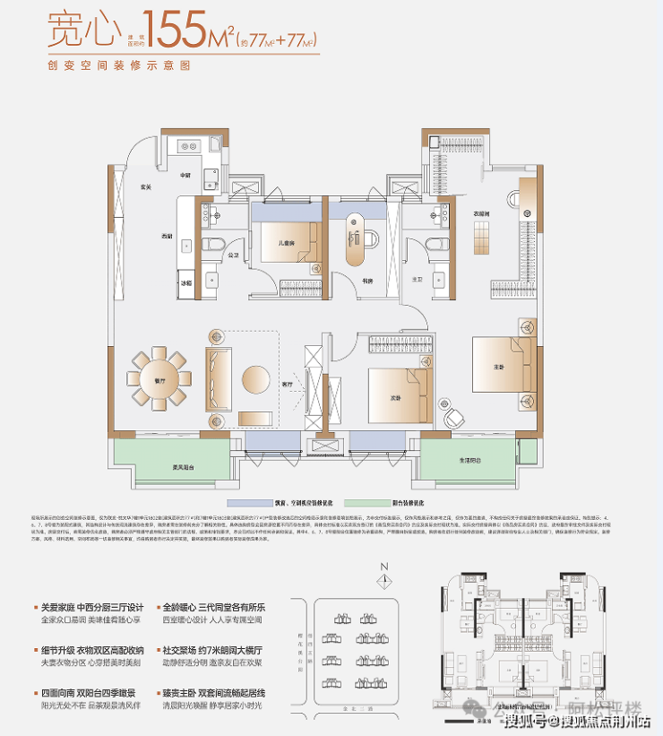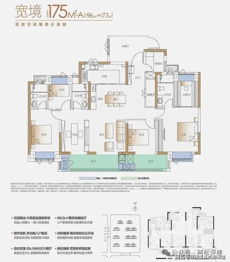 于是开发商结合市场需求,在产品上做出了极为大胆的创新设计,将临近两个小户型做了拼接,实现建面约155-175平的极致大平层。如此以来,大平层的产品既填补了区域终极改善的需求空白,且卖一套抵两套,还能促进项目去化速度,是非常聪明的做法。