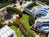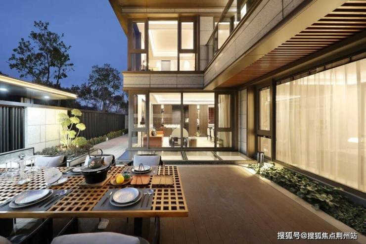 采用新中式风格,外立面以浅色石材、咖色铝板搭配深色屋顶,融合现代奢居理念,打造传世大宅形象。