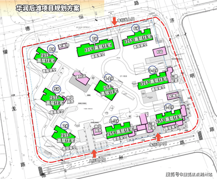 目前该地块设计方案已公示,拟建9幢25-32F的高层住宅、若干社区配套用房以及部分商业设施,共计规划约794户!