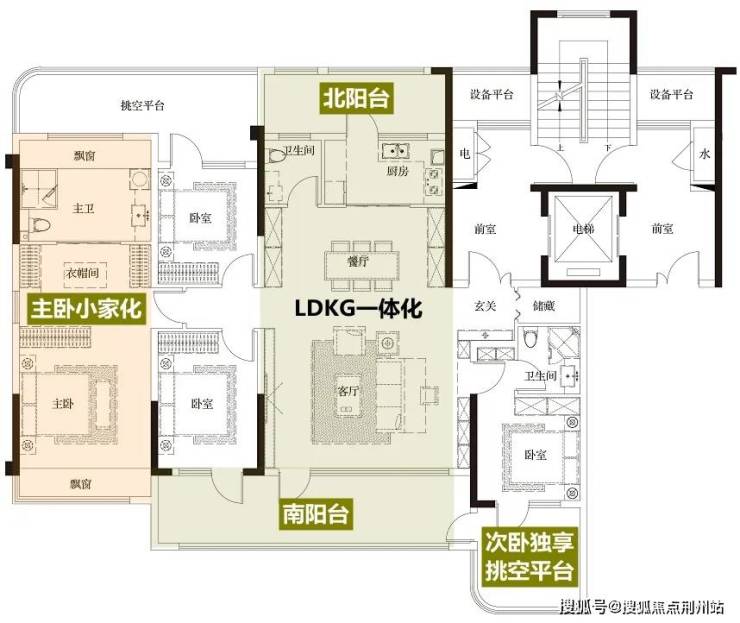 和传统三代宅比,项目建面约129㎡小高层户型,综合使用率约98%-105%,相当于三代宅的建面约160-170㎡大平层的空间感。