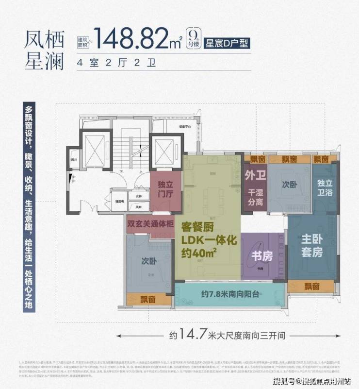 星宸丨约148.82㎡四室两厅两卫 奢逸双景丨百变四房