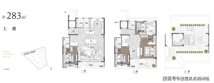 活场,下叠亲近自然,由外而内还原当代苏式墅居场景。