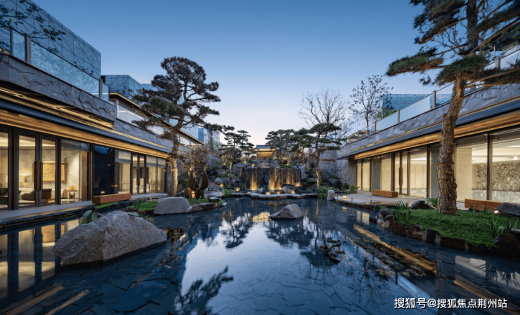 再往深处, 约 1300㎡ 下沉式会所藏在山水环抱里 。 行政酒廊的落地窗外,叠石飞瀑与镜池倒影撞入眼帘;恒温泳池的波光与庭院松影相映,私宴厅的琉璃灯盏随流水摇曳,连健身房的器械旁,都框着一帧松石入画的窗景。地下落客光厅的精装细节更显私密,往来皆 知交 ,举杯闲谈时,抬眼便是庭院的潺潺与松风 。 高阶社交的松弛与尊贵, 弥漫 在这 一方 自然场域里。