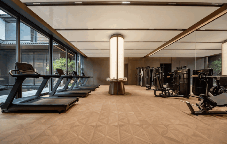 项目会所配备健身房、瑜伽室、私宴厅、棋牌室等,下沉式庭院与惠山景观结合,满足商务雅集与家族社交需求。