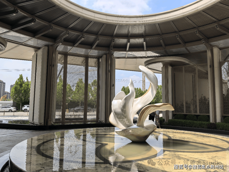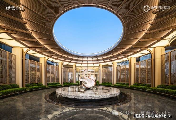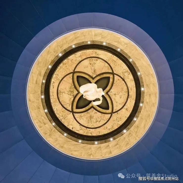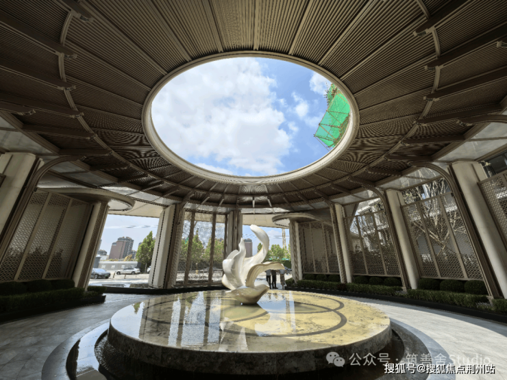 潘多拉璀璨透光奢石水景台,中心定制海棠水景雕塑巍然耸立。阳光透过圆形天窗洒落,如花瓣绽放映衬水景。圆形会客厅采用名贵石材与铝板巧妙拼接,工艺精湛,展现出非凡匠心。熠熠生辉的奢石阳刻花纹点缀其间,营造出“花好月圆”的绝美意境。