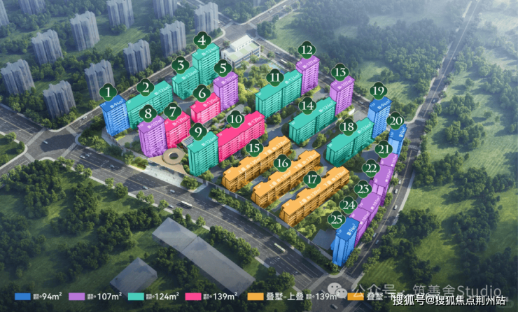 容积率为1.6,匠心打造22栋6至11层洋房与3栋4层叠墅,构筑纯粹改善型低密度社区,居住舒适度全面提升。本项目更是李七庄板块率先采用全架空设计的“悬浮社区”,整体抬高约5.6米,引领架空社区2.0版本的升级革新。洋房提供四种经典户型:建筑面积94㎡、107㎡、124㎡、139㎡,均为实用三室两厅两卫布局。叠拼产品有上叠139平米和下叠178平米两种户型。