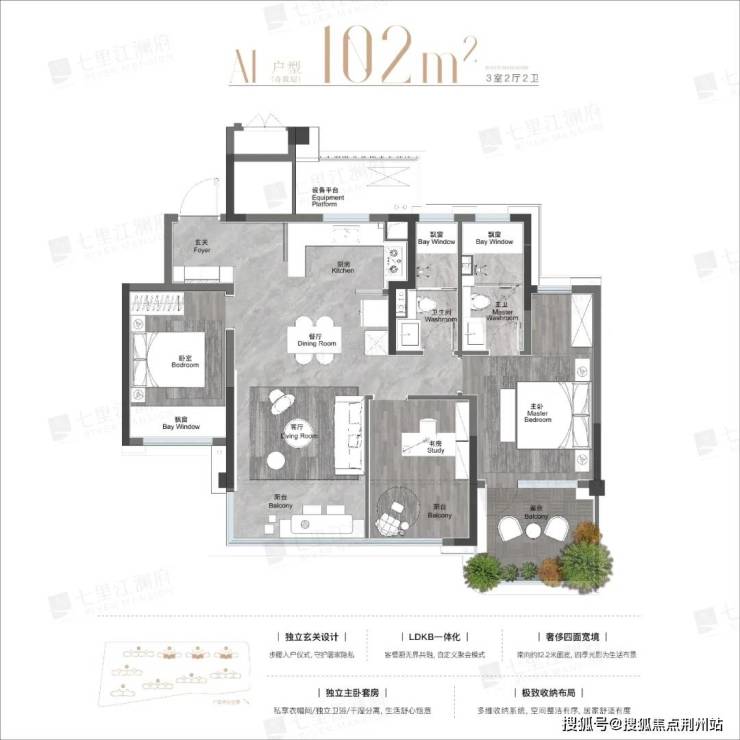 另外,在七里江澜府还有低总价的选择——建面约102㎡三房两厅两卫户型,它是当前江核待售纯新盘中的最小面积段,所以想买四代宅小户型的,不用太多纠结,就选七里江澜府的102㎡户型。