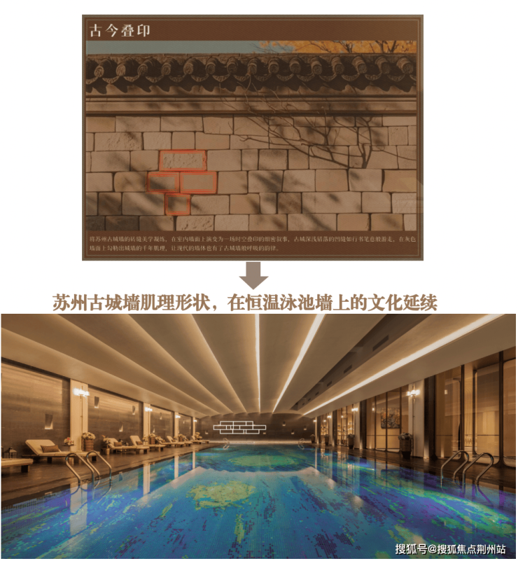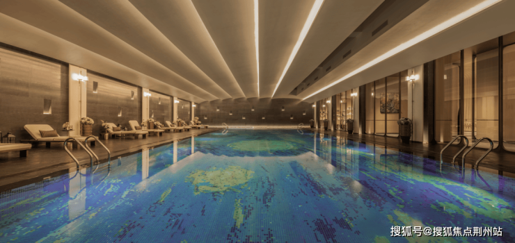 房观最喜欢的是恒温泳池极具灵性的中外文化碰撞:墙面以苏州古城墙为意象,池底则铺贴梵高《星月夜》图案,实现中西美学的融合对话。