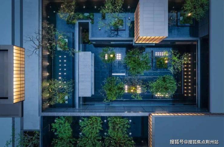 四时造景,曲水流觞。镜面水景,采用黑色奢石进行铺贴。远处的亭榭,转译着归家的温度与适从,借树梢上的一缕清风,浸润内心的疲乏。将空间留给自然,予居者以自在,予心灵以宁静。