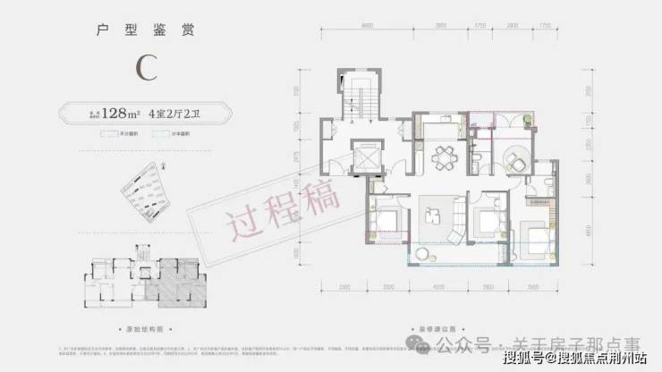 接着我们再看看看它的128户型,四房的设计,南向面宽做到了约13.6米,客厅开间4.2米,但是南向双阳台,连接了南向次卧,赠送面积也很大,而且这个户型做的是一梯两户的设计,电梯做的双开,私密性也很好。整体的房源布局也在小区比较居中的位置,采光视野不成问题。