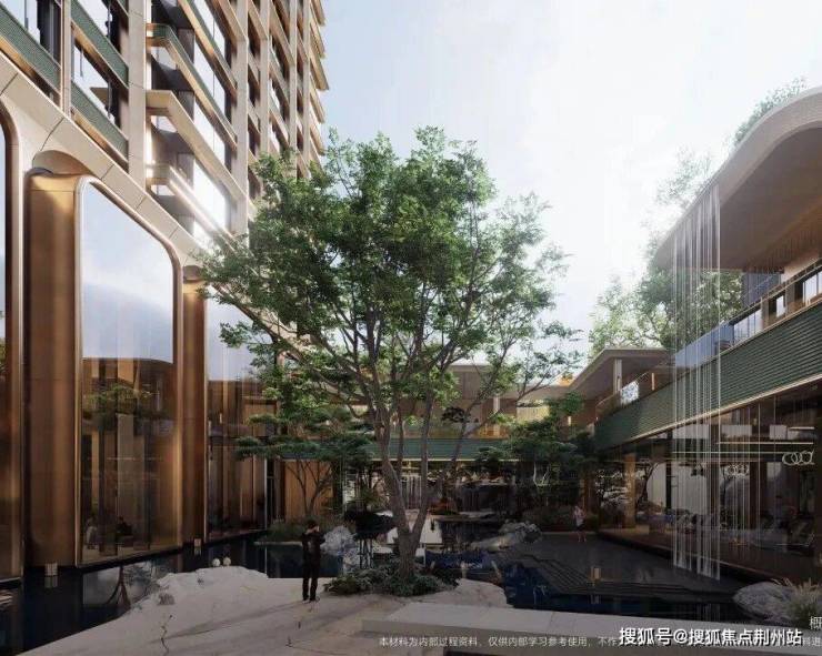 之前中建·玖上琅宸的建筑外立面已经刷屏了一波,设计汲取豫园“金声玉振”灵感,部分选用约1150℃高温烧制而成景德镇稀有陶板,打造“金镶玉制”的海派先锋立面,搭配石材与铝板,让室内外景致无界交融。