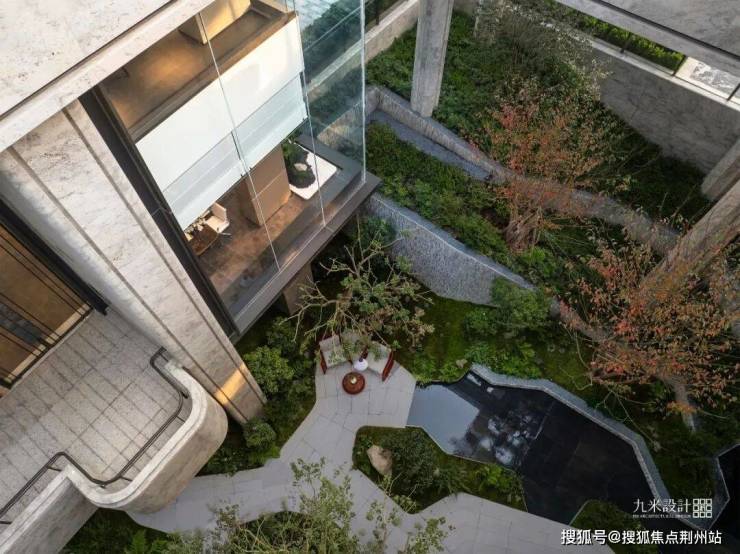 以河道为源,建立从河至院的自然循环系统。流水成为社区的隐形脉络,清晨推窗可见河风水汽,入夜可闻潺潺水声与虫鸣,生活在意象与感知层面均被自然滋养,呼应杭州特有的江南温润气质。