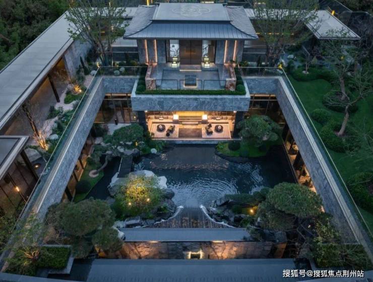 细看水幕石面,千道龙纹随水流隐现;庭院中每一处小品、灯具乃至铺装,皆为专属定制。