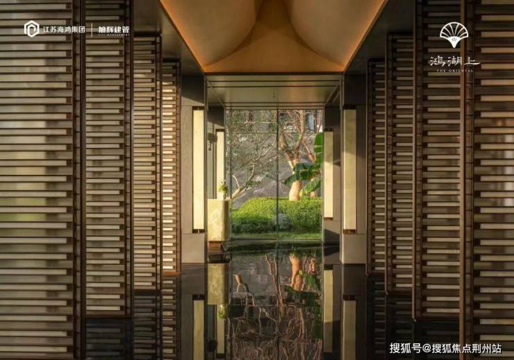 登门望府的归家礼序:踏水迎财、九松迎客,鸿湖上主入口长达约60米酒店式入户门庭。