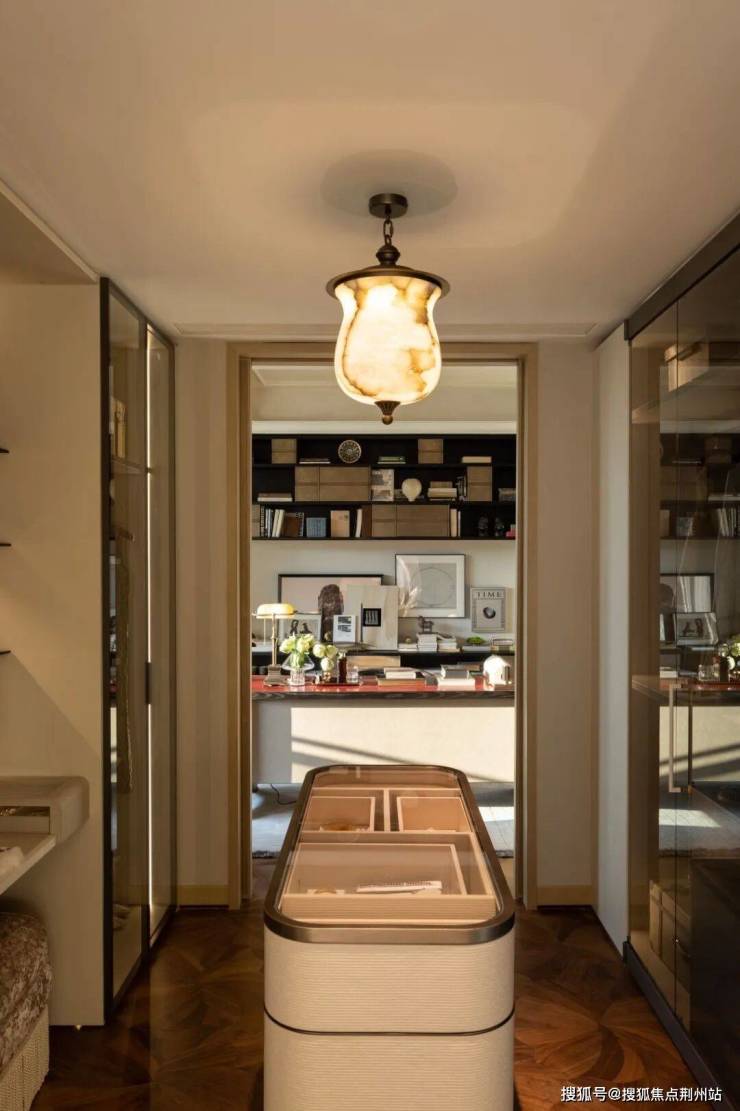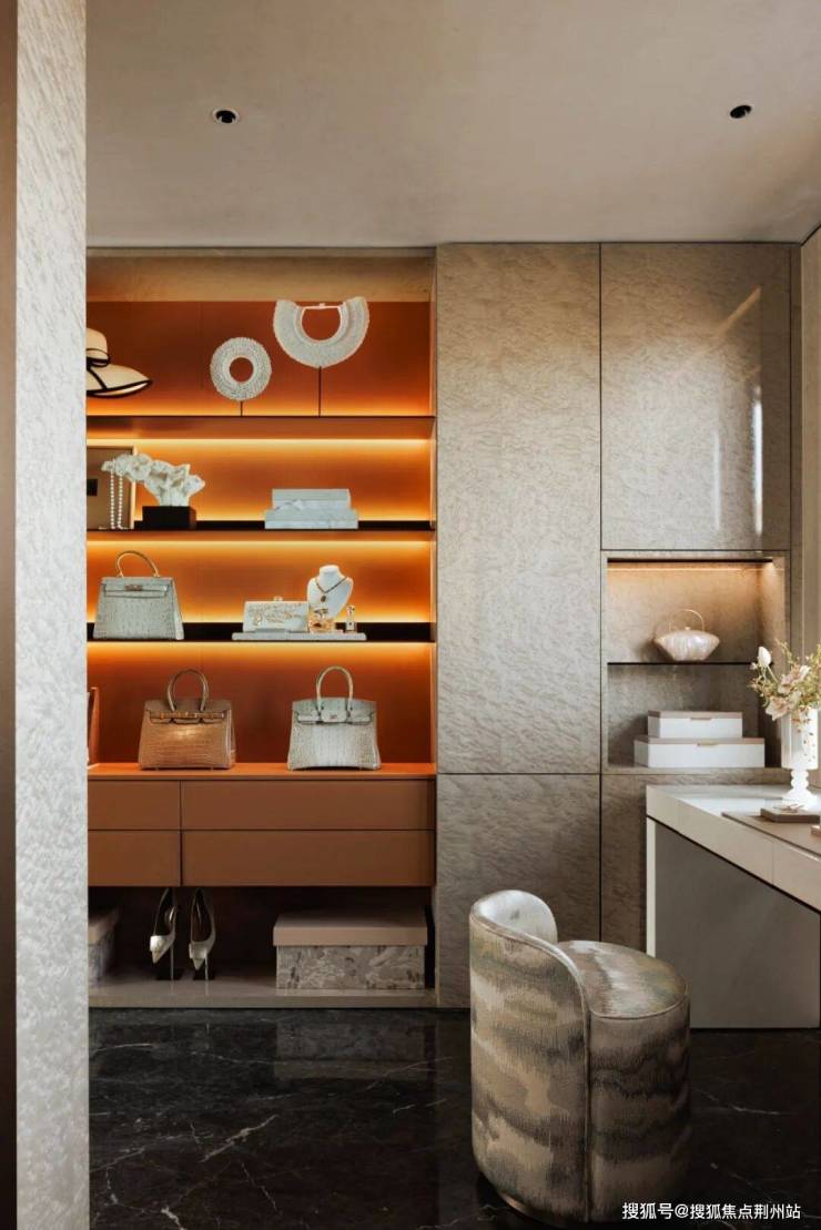 步入衣帽间,感应灯带随脚步亮起,衣物与配饰一目了然。皮革多宝格首饰盒内,将项链、腕表与戒指妥帖分区,找寻搭配从容不迫。下拉式挂衣杆精准回应人体工学,高处衣物触手可及;独立的分区设计,四季服饰各得其所,秩序井然。