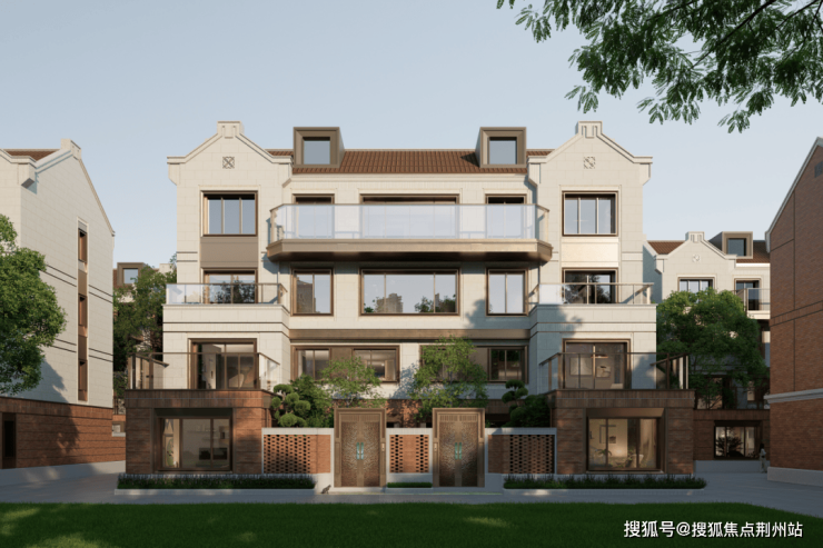 作为杨浦滨江惟一新规抬板墅区,项目将社区地面整体抬升约两米,有效阻隔外部视线干扰与城市噪声,以物理高度换取精神宁静。同时规划下沉式庭院,结合叠水、绿植形成立体园林。