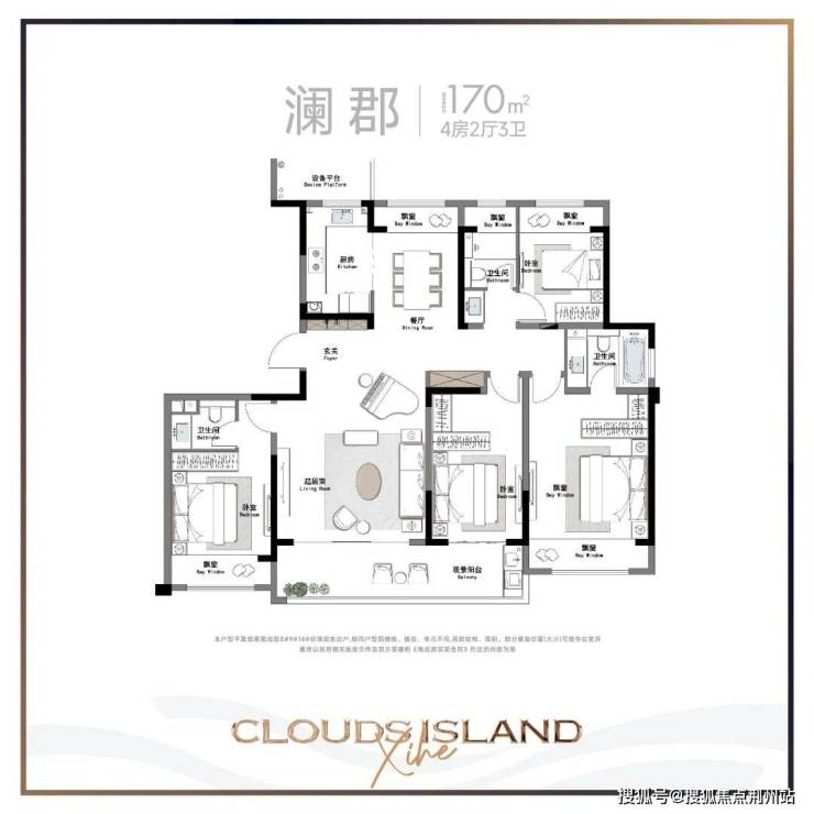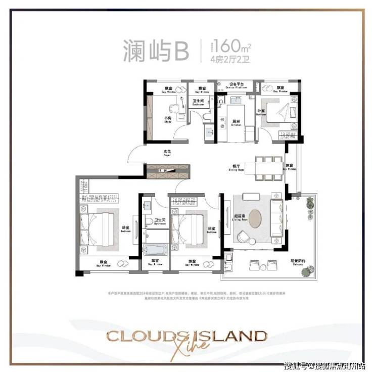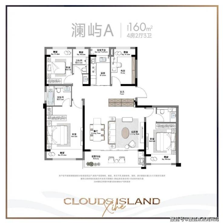 160㎡户型有2个,A户型四房两厅三卫,B户型四房两厅两卫,B户型还采用了270°转角阳台,显然是为观景准备。