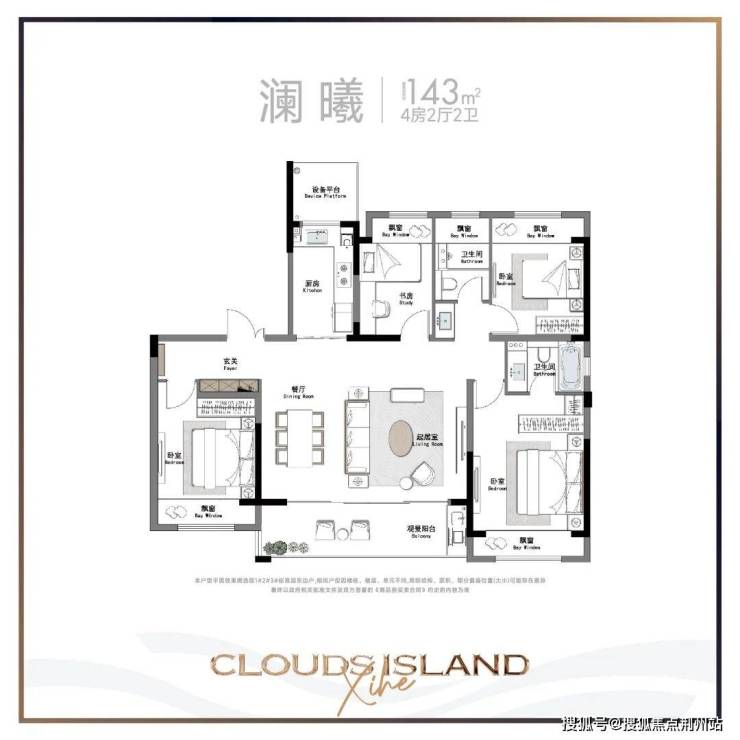 143㎡户型,四房两厅两卫,客餐厅的尺度一下就上来了,但是只有2卧朝南。