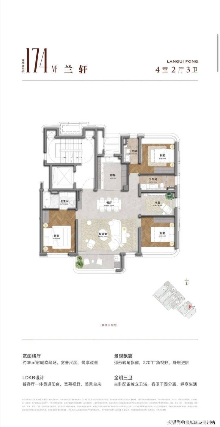 超大尺度的客餐厅,全明厨房,通过巧妙的布局,将居住、生活、社交等功能完美融合;