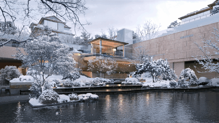 绿城·云庐承接紫金山山势,呼应玄武湖水脉,以南北双院为核心,在园林中构建丰富的立体景观体系,铺陈双下沉庭院、悬浮嬉水池、松风茶室、童趣综合体等景观节点,让山、水、园、宅融为一体,营造一座“可居住的微缩紫金山”。