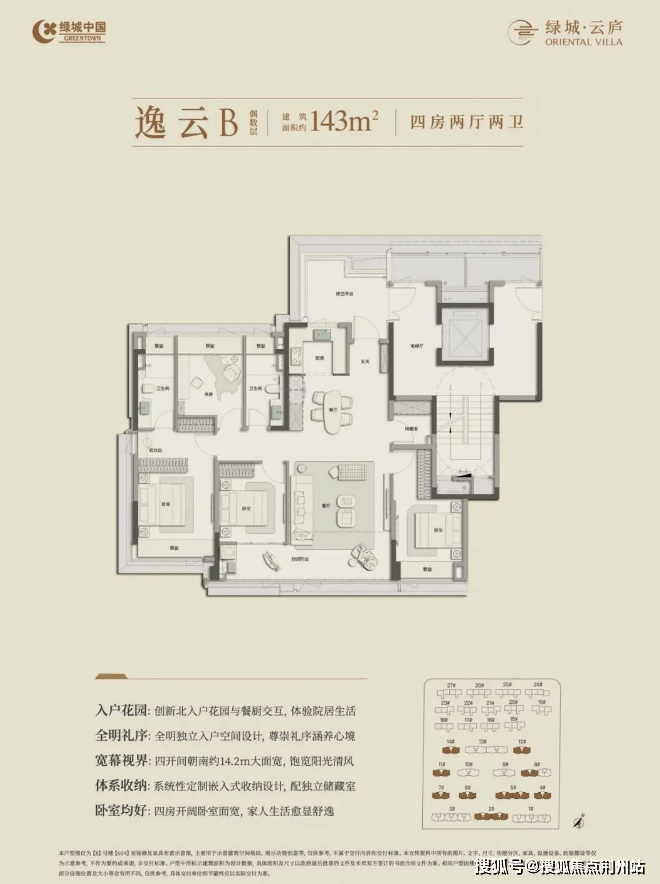 建筑面积约143㎡四房两卫户型,非常有看点: