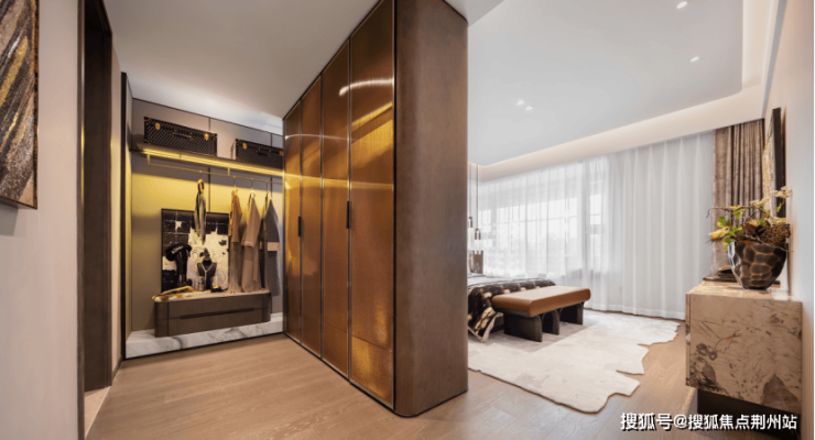 约10.4m“跑道式”瞰景阳台与南北双阳台系统,实现了景观欣赏与生活功能的高效分区。主卧270°寰幕飘窗将卧室变为观景舱,而雅致衣帽间的贴心布局,则在细节处诠释了有序、从容的世家生活哲学。