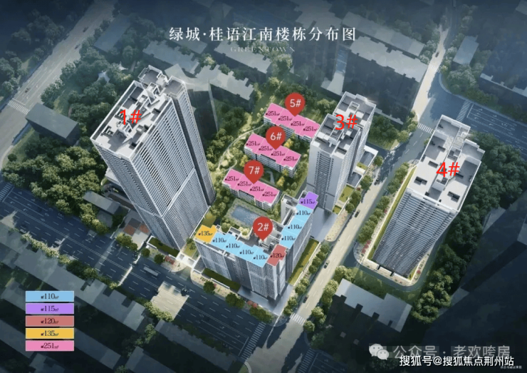 项目共由7栋住宅组成及1所幼儿园组成,其中1号楼共53层,2号楼共三个单元,1个单元23层、1个单元28层、1个单元33层;3号楼也有两个单元,1个单元27层、1个单元32层;4号楼1个单元31层、1个单元46层;5-7号楼是别墅都只有4层。
