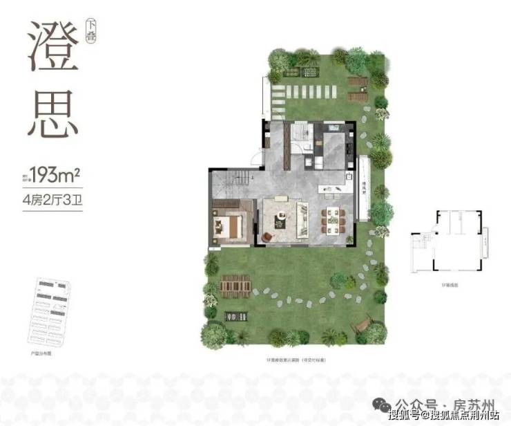 约193㎡下叠,4房3卫,带南北双花园。