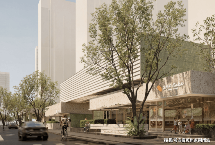 售楼处所在位置,沿街一侧地面铺装、卡座都做好了,目前已经有咖啡馆营业,上海的摩登氛围、小资腔调,还没走进小区就已经能感受到了。