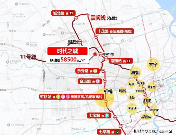 项目直距地铁11号线陈翔公路站约900米,可快速链接徐汇、浦东、前滩等地;近嘉闵线南翔站(在建),4站即达虹桥;更与沃尔玛山姆会员店(已开业),仅一路之隔,直距约34万方印象城MEGA约900米。