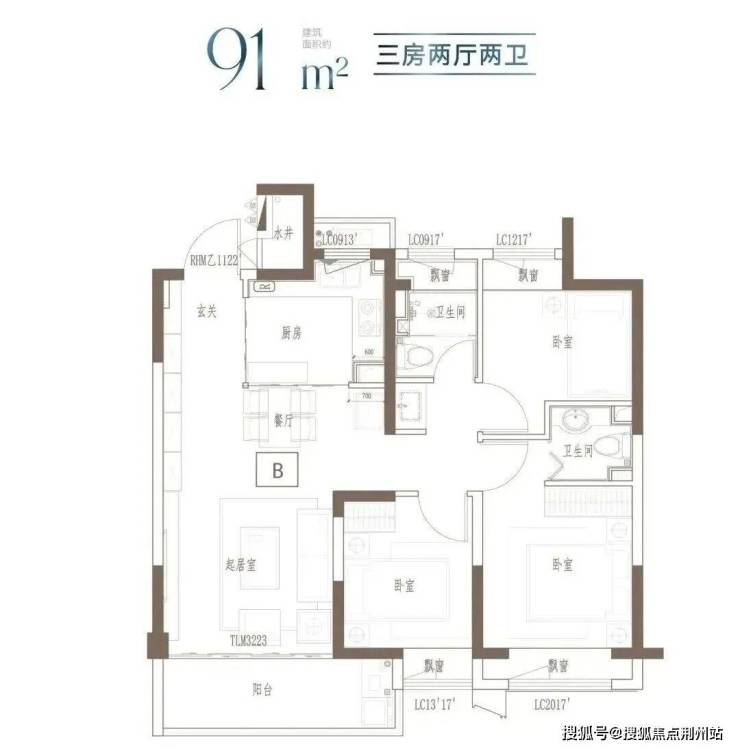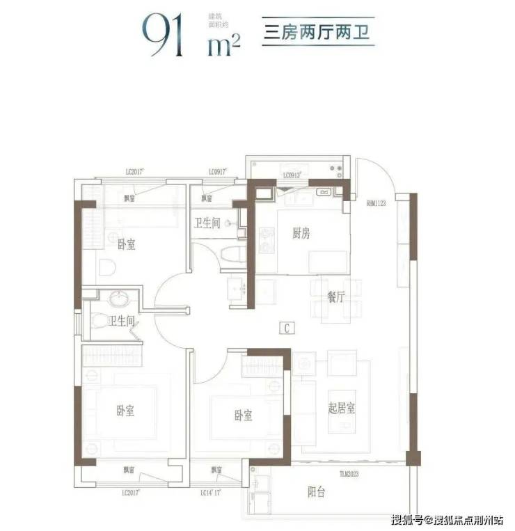 建面约91㎡ 3房2厅2卫▼