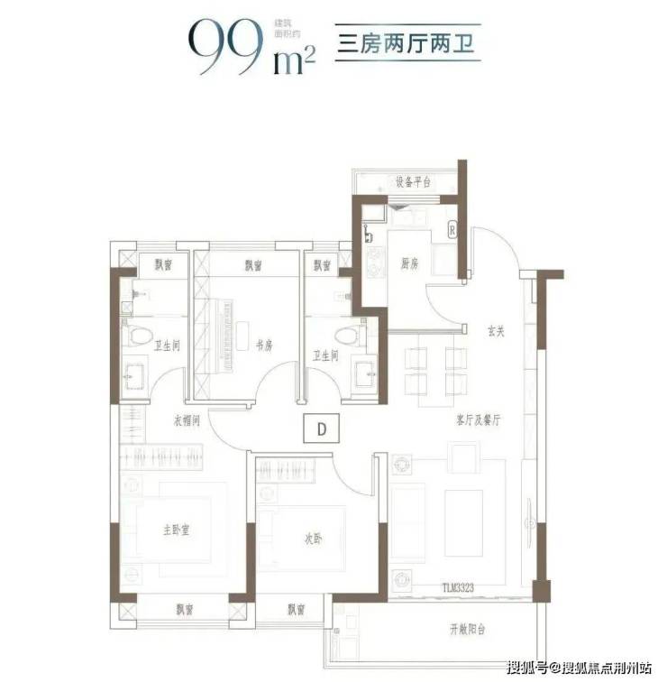 建面约99㎡ 3房2厅2卫▼