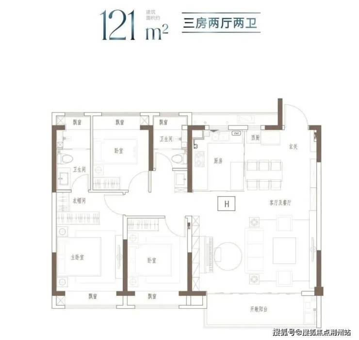 户型特点:3开间朝南,全屋阳光充足;L型厨房转角移门设计,最大化空间视野;四飘窗设计,通透空间享受;动静分区,亲密有度;套房式主卧,容纳私谧生活点滴;