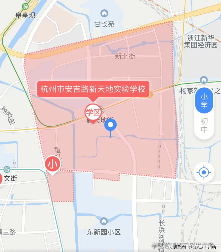 关于学区:新房无学区,待交付后由教育部门统一划分,可根据就近原则来做参考,根据目前的学区划分情况来看,新地块在杭州市安吉路新天地实验学校的范围内: