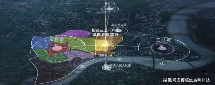 长安三工厂片区处于观音桥东,处于观音桥商圈和江北嘴的衔接点。一个是国际消费中心的先行区,一个是西部金融中心的所在地。