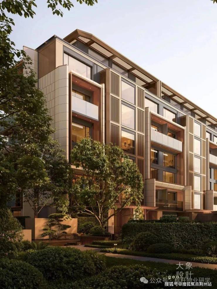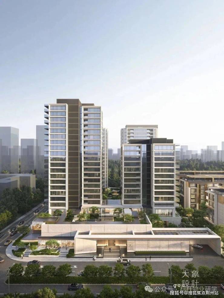 高层建筑采用现代格构体系设计,通过仿石铝板与玻璃的虚实搭配,选用高级灰与大地色系,质感沉稳内敛。叠墅延续蒙德里安格构手法,强化竖向构图与独户体验,设置层层退台及进深2.4-3米进深露台,拓展生活场景,也可打造屋顶花园。