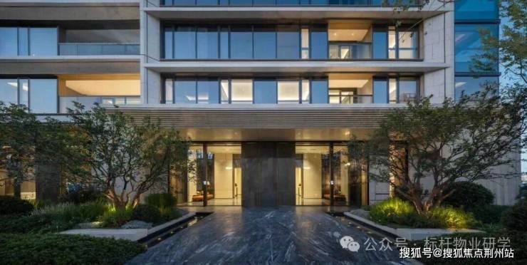 沉香米黄石材+铝板斜切工艺+三玻两腔LOW-E玻璃幕墙,勾勒出干净利落、繁简有序的层次感。