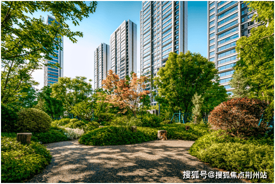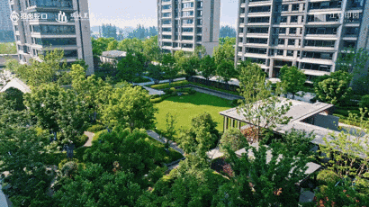 小区打造了约1.5万方的中央景观园林,设计了“两轴一心四组团”,多重珍稀树种全冠移植——丛生乌桕、罗汉松、榉树、红枫、鸡爪槭、樱花、海棠、绣球、月季……枝繁叶茂,俨然一片“森林水景”。
