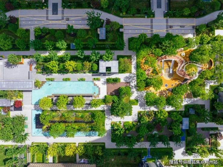 从空中俯瞰,小区11栋住宅采用围合式布局,南北楼最大间距约80米,留出了更多公共空间。从房间望出去,郁郁葱葱的阳光空间呈现在眼前,仿佛在公园、度假区。
