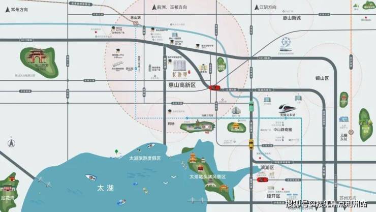 项目位于惠山区江海路与洛南大道交汇处,周边坐拥杉杉奥莱(在建)、亿丰商业广场、百乐时代广场等商业配套,新开河实验学校、洛社初级中学、洛社高级中学等优质教育资源环伺,生活氛围浓厚。