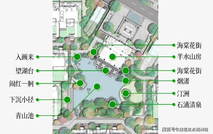 项目的园林,借鉴了苏州拙政园、东京旧芝离宫等的造园灵感,并糅合九溪烟树、西溪湿地等,形成 「一溪两园三十景」 把韵味悠长的诗境,在项目中再现。