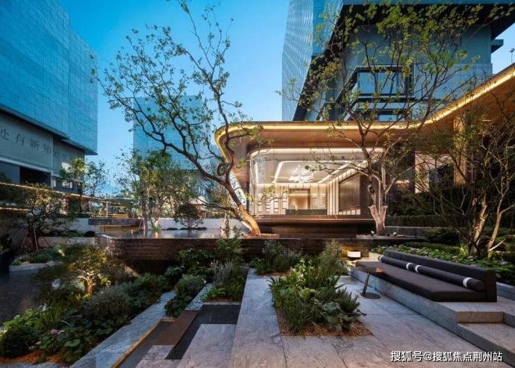 项目的庭院实景,可以明显感受到,它区别于之江以往的任何一个项目,最直观的体会就是“拾级而上,一步一景”。