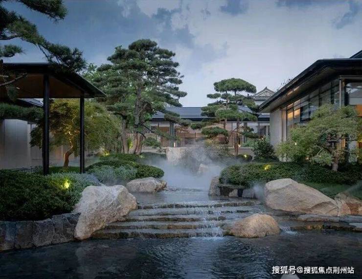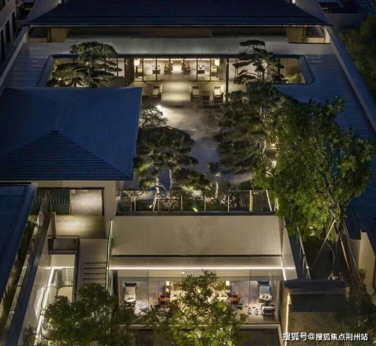 三进院落布局,融合泰山玄武黑石材、太行蓝翡翠等天然材料,活水园林与造型松构成“一步一画”的沉浸体验。