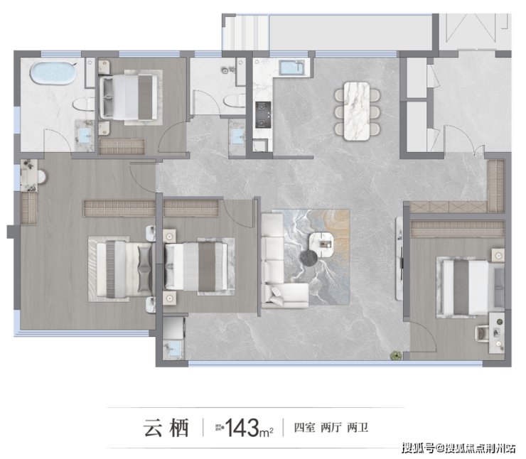 建面约143㎡小高层户型,格局方正大气。主卧配备独立衣帽间与270°观景飘窗,兼顾私密性与视野享受。