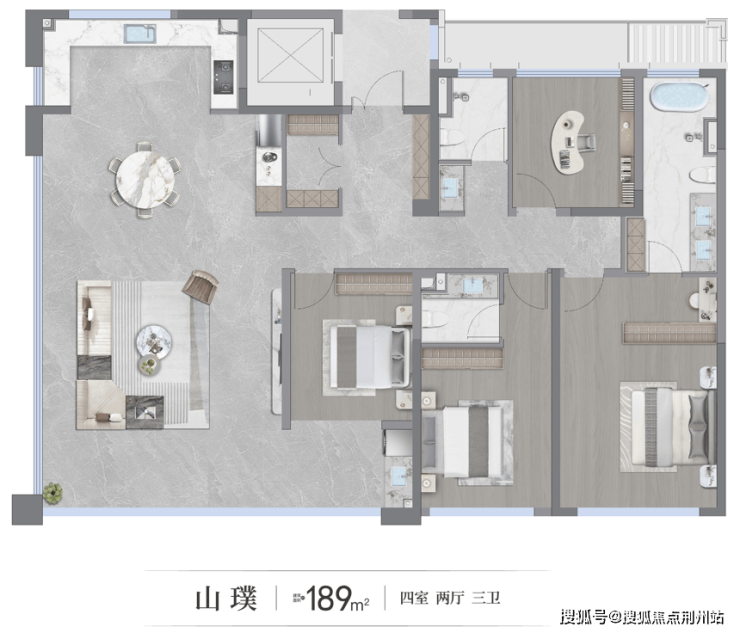 户型设计:主力户型为127-189㎡,层高3.1米,部分户型配备270°环幕阳台、宽厅设计,赠送面积较多,空间利用率高。