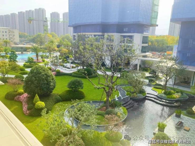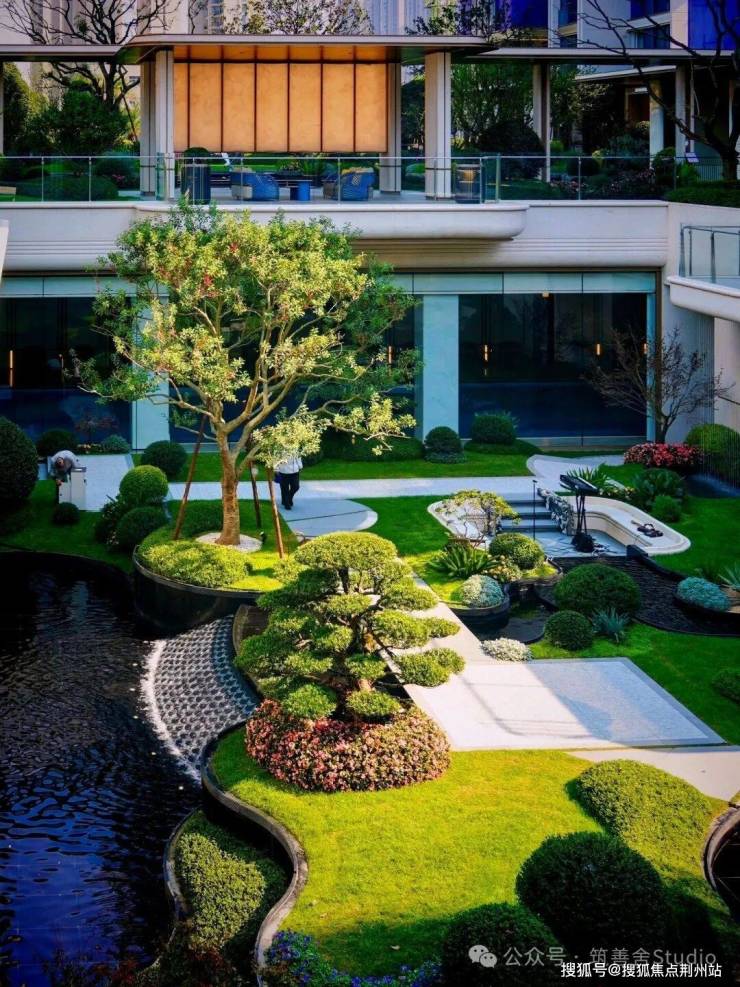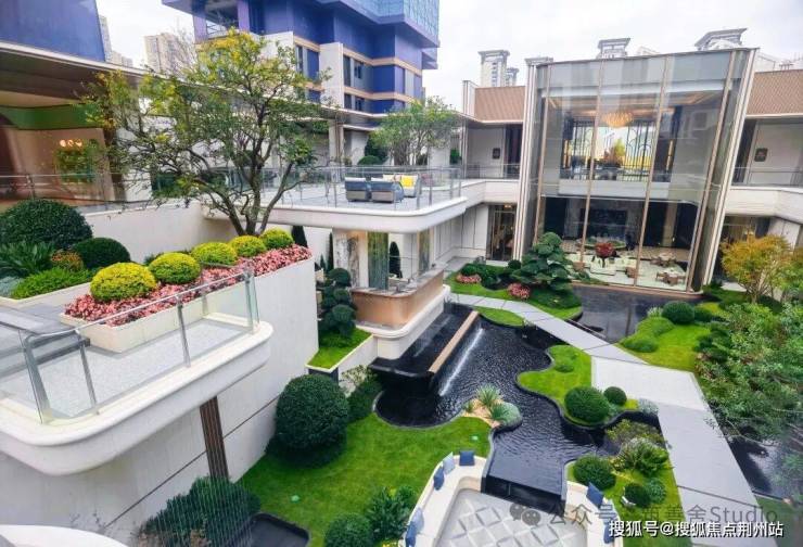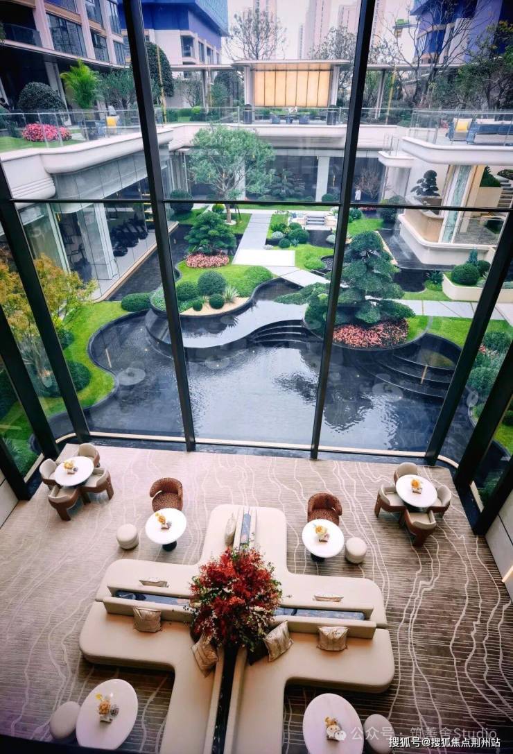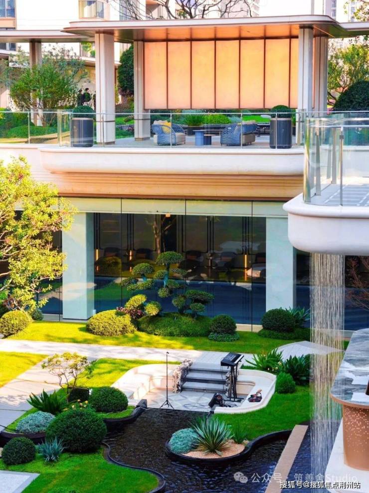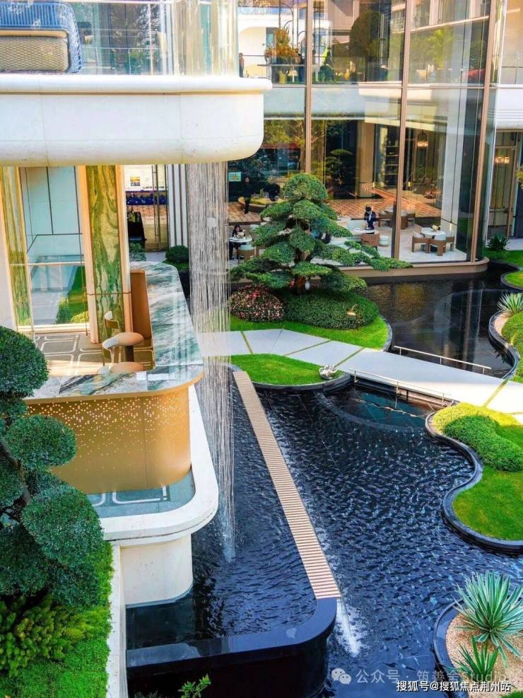 下沉庭院巧妙利用约6米的高差,打造出一座被自然环抱、风景沉浸的私家花园。借鉴艺术家的光影魔法,这里呈现出层次丰富、光影流动的独特场所。约11米的震撼挑高与整幅大尺寸定制玻璃相结合,极大优化了地下空间的采光,让阳光肆意洒落,实现室内外景致的完美交融。滨江经典的热带园林景观,满栽高耸的热带树种;下沉式庭院中的水景与园区中央的异形景观水池相映成趣。池畔吧台和亲水卡座的布置,让人在此小憩时,仿佛置身于东南亚高级度假酒店之中。