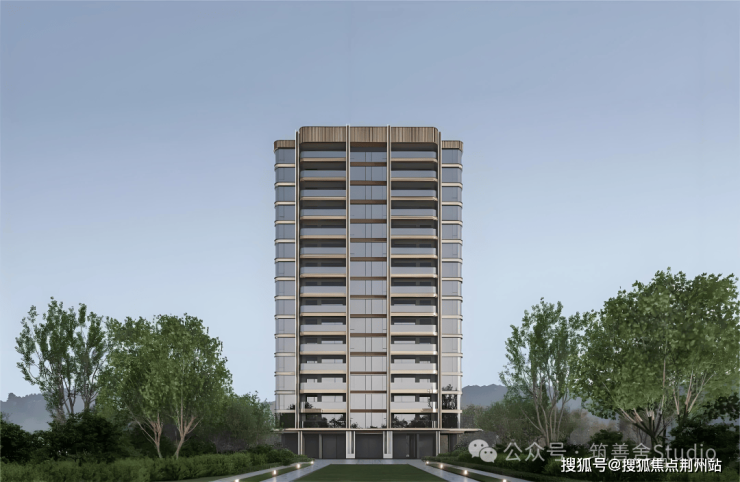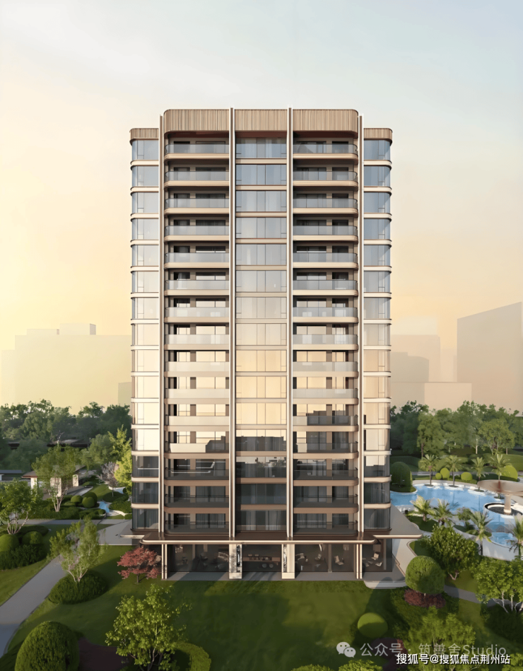 建筑立面采用四面铝板包裹,南向大面积玻璃采光,边角弧形处理增添优雅灵动,精致设计尽显豪宅风范。
