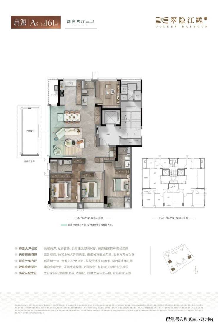 项目一共有三个户型,分别为161㎡、180㎡和230㎡三种户型。起步就是161㎡的四房两厅三卫,是纯粹的高端改善盘。