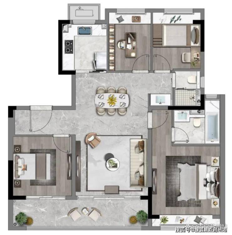 户型设计合理:119㎡和136㎡四室两厅两卫,满足不同家庭需求